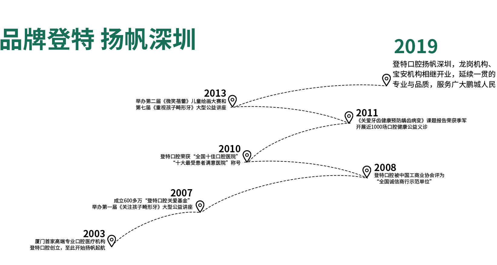 16年来,登特口腔专注于牙齿的美丽与坚固,已先后在厦门、福州、上海、深圳等地开设多家口腔连锁医院,汇集了国内外顶尖口腔医疗专家,引进国际精尖数字化诊疗设备,运用国际领先技术材料,采用精湛微创技术,凭借贴心服务、诚信经营和国际先进的医疗管理模式,“一站式”全程预约、完善的牙齿修复保障体系为顾客提供家庭般温馨服务。